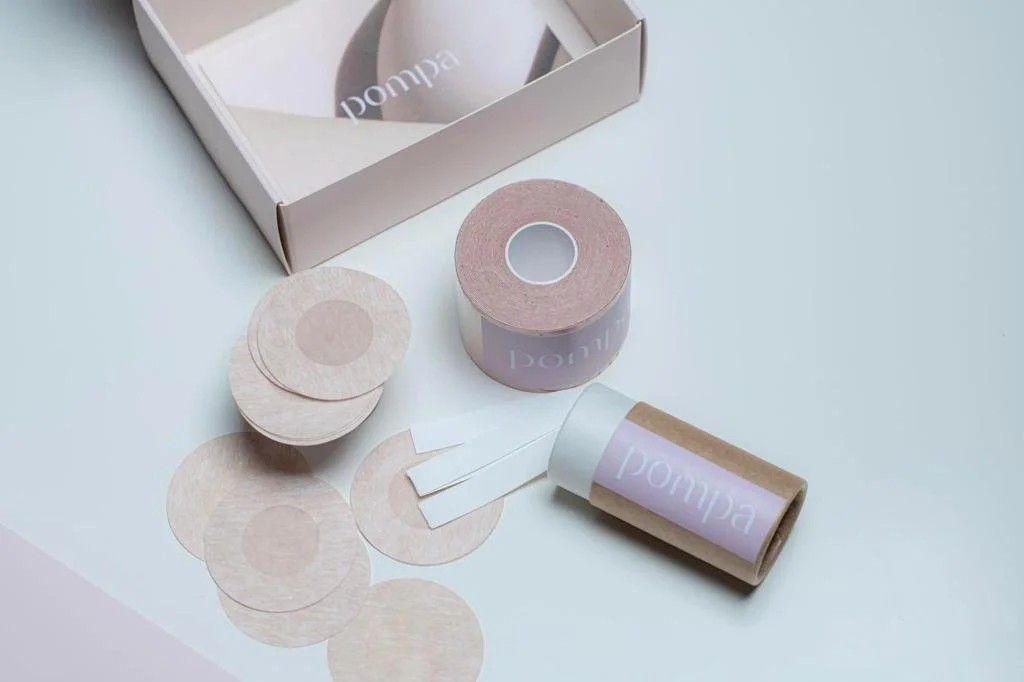 Cinta de tela suave color piel autoadhesiva y elastizada. Levanta y sostiene el busto. Es la solución perfecta para todo tipo de escotes y espaldas ya que se adapta y puede ser colocada de infinitas formas.